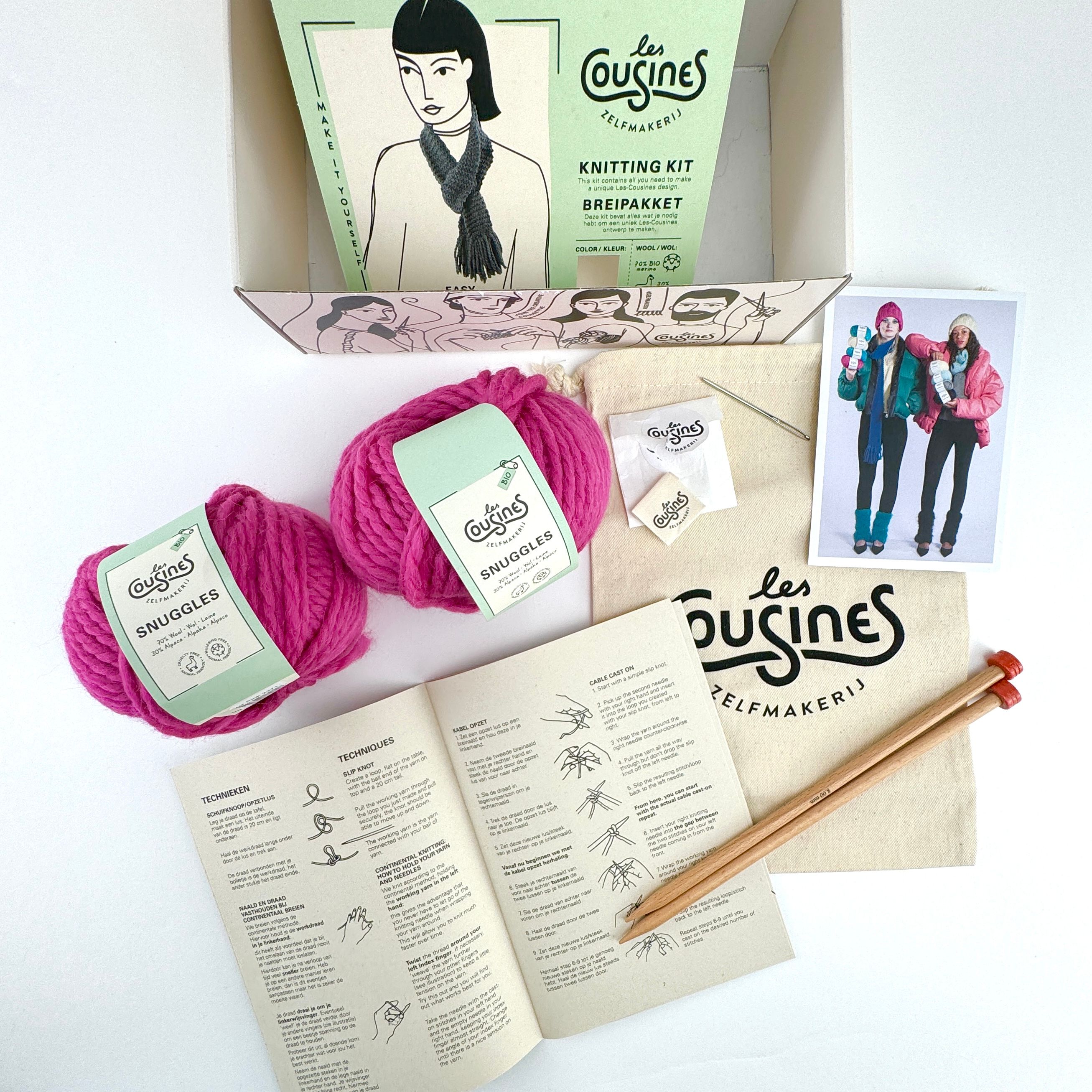 De Easy Scarf leer je breien op korte, rechte breinaalden, je neemt je pakket gemakkelijk mee onderweg.
